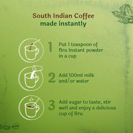 BRU Instant Coffee was launched in 1968 and was India’s first coffee- chicory mix instant coffee. It has remained India’s No. 1 coffee brand since then. It is made from a fine blend of the choicest plantation and Robusta beans. These coffee beans are first roasted to perfection then the new & enhanced process ensures that the fresh coffee aroma is preserved so that you get a rich coffee taste beyond compare. Bru Instant coffee can be used to make an aromatic cup of hot coffee as well as a refreshing glass of cold coffee. With Bru Instant, you can now discover a great coffee experience with your loved ones. Buy Now!