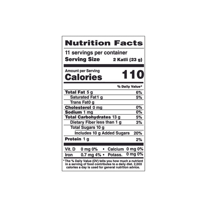 Cashewnuts (52.5%), White Refined sugar, Cardamom Powder, Potassium Sorbate(INS 202), Silver Leaf.