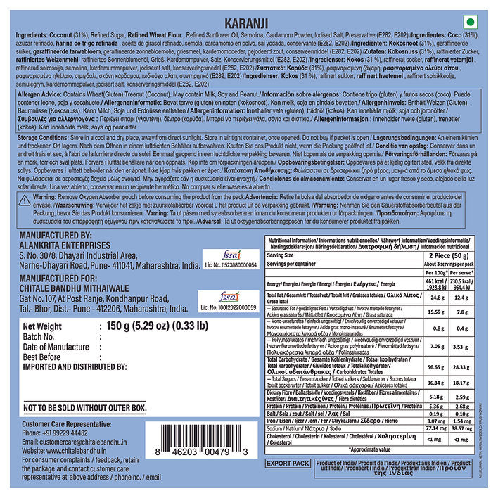 Coconut (31%), Refined Sugar, Refined Wheat Flour, Refined Sunflower Oil, Semolina, Cardamom Powder, Iodised Salt, Preservative (E282, E202)