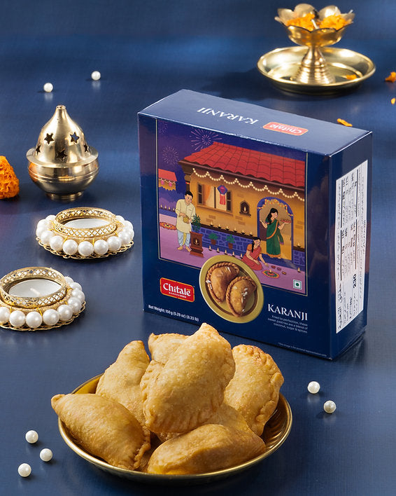 Delicately crisp on the outside and lusciously rich on the inside, our Karanji is a timeless treat crafted with love and tradition. Each golden pastry is hand-folded and fried to perfection, revealing a warm, aromatic filling of coconut, semolina, and a hint of cardamom that lingers on the palate.