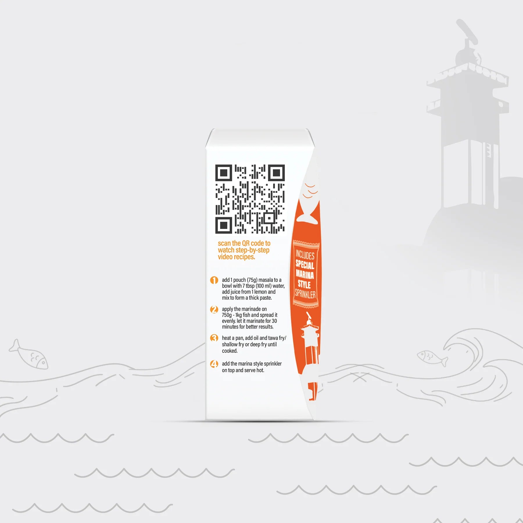 Contents of the pack: 1 pouch fish fry masala, 1 pouch special marina style sprinkler