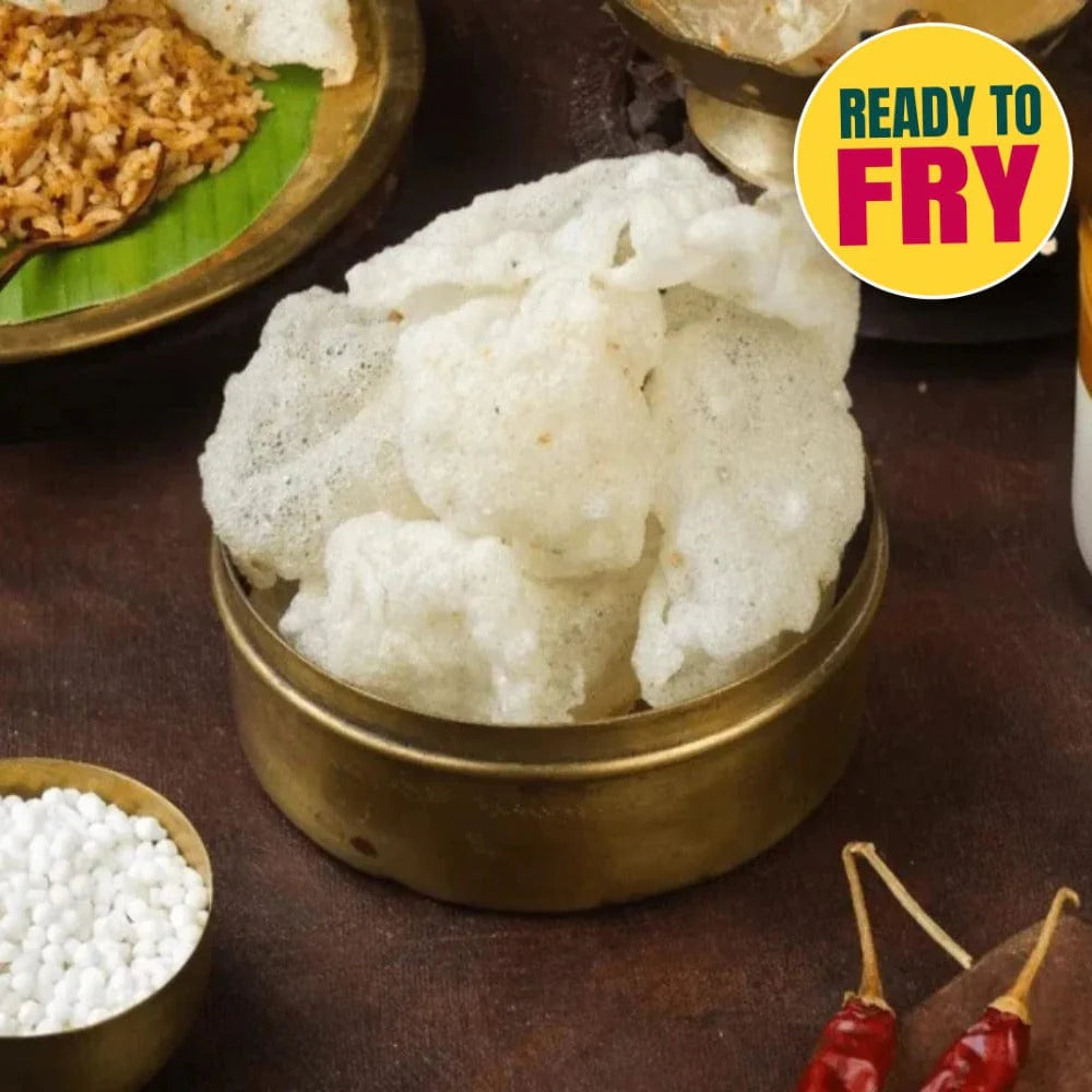 Enjoy them fried, roasted, or microwaved—whether as a side with rice or a crunchy snack on their own. With no artificial colours or preservatives, these crisps deliver the taste of homemade goodness. They also serve as a tasty alternative to javvarisi appalam, making them a must-try for lovers of South Indian snacks.